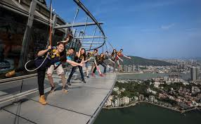 The Macau Tower in China offers the world highest commercial bungee jump at 764 feet. The Macau Tower stands at an impressive 338 meters (1,109 ft) with an observation platform around 233 m above ground level.  Standard Bungee Jump package: MOP 3,488. Includes certificate, membership  card, exclusive T-shirt, and Macau Tower ticket. Full Package: MOP 3,988 . Includes everything in Standard plus HD photos & video on USB.