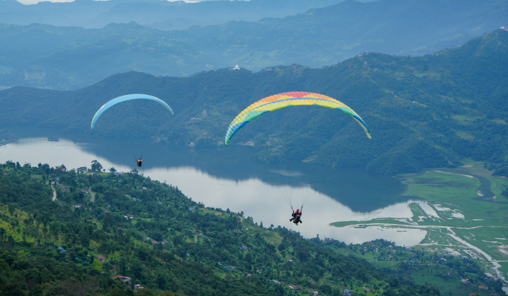 Pokhara in Nepal : Pokhara in Nepal is considered one of the best paragliding destinations in the world, offering a perfect mix of natural beauty and adventure. Located near the Annapurna mountain range, Pokhara provides breathtaking views of snow-capped Himalayan peaks, rolling hills, and the serene Phewa Lake below. Sarangkot Hill, about 1,600 meters above sea level, which provides an excellent launch site with reliable weather conditions and thermal currents. As you glide through the skies, you can witness the stunning contrast of green valleys, blue lakes, and majestic mountains, making the experience truly unforgettable. Nepal Paragliding typically costs between ₹5,814.34 and ₹11,115.64, depending on the duration and type of flight.