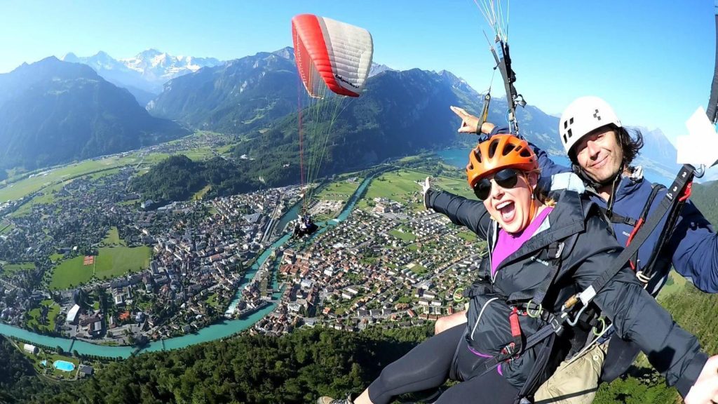 Interlaken in Switzerland : Interlaken in Switzerland is one of the most popular and scenic destinations for paragliding in the world. Nestled between Lake Thun and Lake Brienz and surrounded by the majestic peaks of the Swiss Alps, Interlaken offers breathtaking views that make flying here truly unforgettable. Paragliders  take off from the nearby mountains, such as Harder Kulm or Beatenberg, and glide over turquoise lakes, charming Swiss villages, and snow-covered alpine peaks. The calm winds and stable weather conditions make it an ideal spot for both beginners and experienced paragliders. The paragliding cost in Interlaken depends on the flight’s duration that you choose. It generally ranges between CHF 120-200, INR 8778- 14,600.